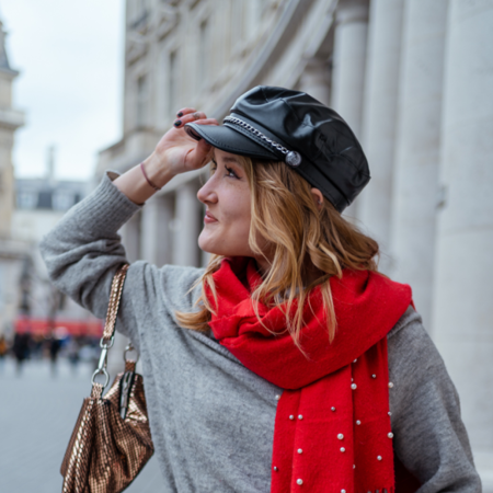 Mit straffem Pferdeschwanz und selbstbewusster Haltung erschien das erste Model in einem schwarzen Minikleid mit geradem, gleichmäßigem Schnitt auf dem Laufsteg. Simpel, aber atemberaubend. Ihr Hals wurde von einem breiten, leuchtend roten Wollschal geschmückt, dessen vorderes Ende auf Brusthöhe endete, während das hintere wie ein Hochzeitsschleier den Boden entlang schliff. Allerdings handelt es sich bei Adindas Kreationen nicht um herkömmliche Wolle, sondern um Merinowolle. Das sei die feinste Schafwolle, die nicht nur äußerst weich und bequem, sondern auch für Personen geeignet ist, die herkömmliche Wolle nicht auf ihrer Haut vertragen, erklärte Designerin Adinda Meijts im Interview.