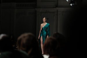 Ein Highlight der Show war das kreative Upcycling: Statt überschüssige Stoffreste zu entsorgen, wurden diese an Accessoire-Designerinnen und Künstlerinnen weitergegeben, die daraus einzigartige Stücke für die Laufsteg-Show schufen. Mit dieser Herangehensweise setzt SYLGV ein klares Zeichen gegen Ressourcenverschwendung und zeigt, wie Mode aktiv zur Reduzierung des ökologischen Fußabdrucks beitragen kann.